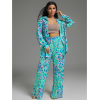 бирюзовыйКостюм женский состоит из рубашки и брюк.